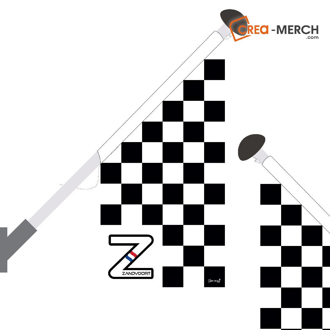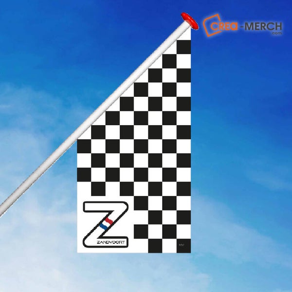 Race Finish vlag Zandvoort formaat 60x60x120cm gevelvlag zwart wit geblokt. Materiaal gemaakt van de beste kwaliteit vlaggenstof met ktunnel en met stevig koord en lus rondom gezoomd. Zeer geschikt voor iedere vlaggenstok met een lengte van 150 - 200cm. Hang je straat vol met deze Zandvoortse Race en finish vlaggen.. Bij Vlaggenclub kan je voordelig Finish en andere Racevlaggen kopen. Race finish vlag Zandvoort op verzoek ook in andere formaten leverbaar. Let op deze vlag zitten auteurs rechten en mag niet worden na gemaakt.
